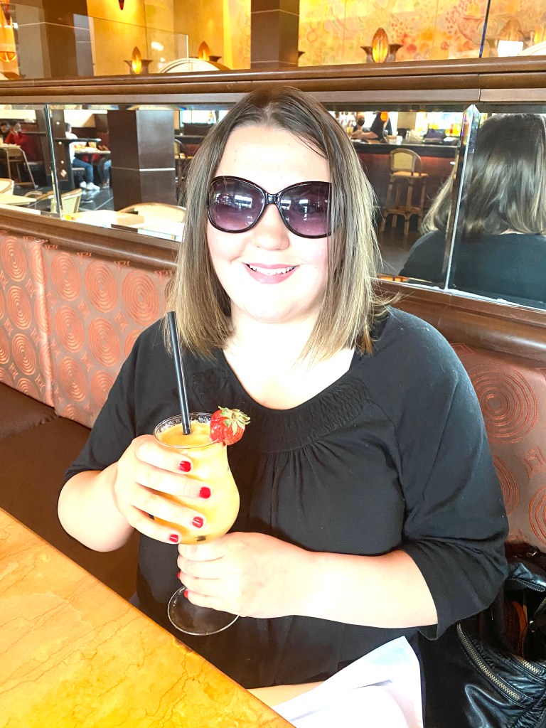 This evening, I was able to leave quarantine briefly to visit one of my favourite places. I’ve been to the Cheese Cake Factory on a total of 3 occasions, (once in Nashville, once in Connecticut, and now in Philadelphia), and it was stellar all three times. The drinks were good too. My first one was a peach Bellini with a strawberry on top. One of my favs.