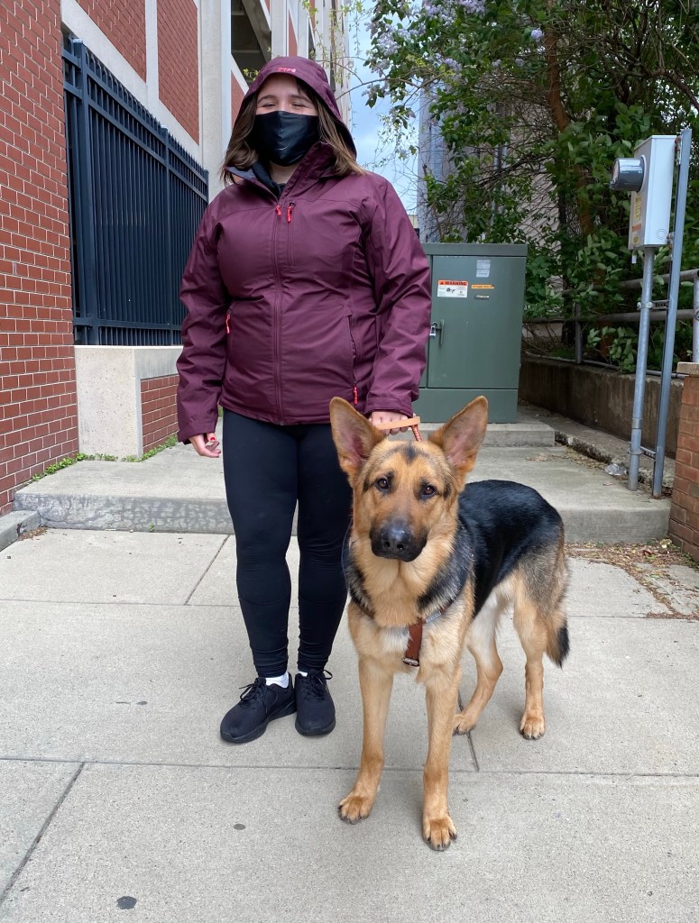 The rest of the day was pretty much spent trying to get through to him. It can take a while, especially with Shepherds. They’re such great dogs, but you really have to earn in with them, I find. We had our first trip that afternoon, and that was a moment I’ll never forget. W was hesitant. He didn’t move forward on the first try, but with some encouragement from myself and especially our instructor, A, he was moving out in no time. It was a short and easy root. We went over basic commands and practiced a few simple street crossings. He did everything he was supposed to, and we returned to campus in one piece.